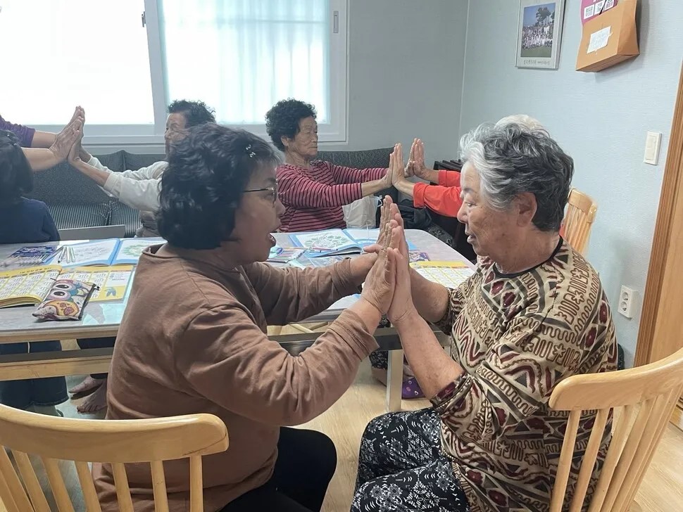 “자, 두 팔을 앞으로 쭉 뻗어서 손바닥을 밀어보세요.” 지난 10월22일 오후 1시께 경기 안성시 일죽면 송천리 서부경로당에서 ‘일죽동친’ 건강운동리더 하인녀(65)씨가 안성의료복지사회적협동조합(안성의료사협)에서 만든 근감소 예방과 낙상 방지 운동 동영상을 보며 시범을 보이며 말했다. 의자에 앉은 어르신들이 천천히 팔을 앞으로 뻗었다. 건강운동리더와 손바닥을 마주하며 힘을 줄 때는 작은 신음이 섞였지만, 얼굴에는 웃음이 맴돌았다.